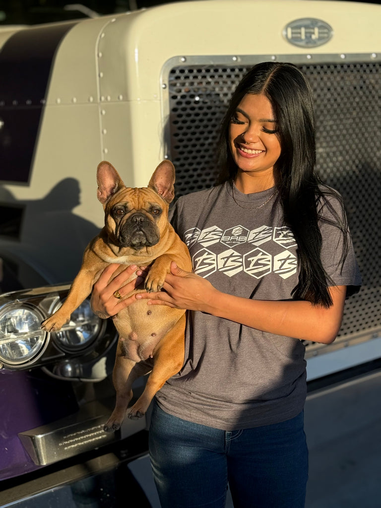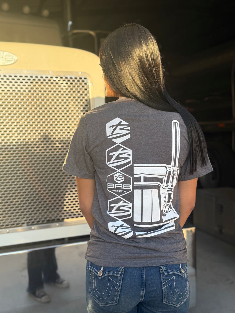 This BRB design features the front silhouette of a Peterbilt and the BRB logo in a vertical checkered pattern that was inspired by the black and white checkered race flags. The front features the BRB logo in the same fashion but horizontal with our established date in the center!